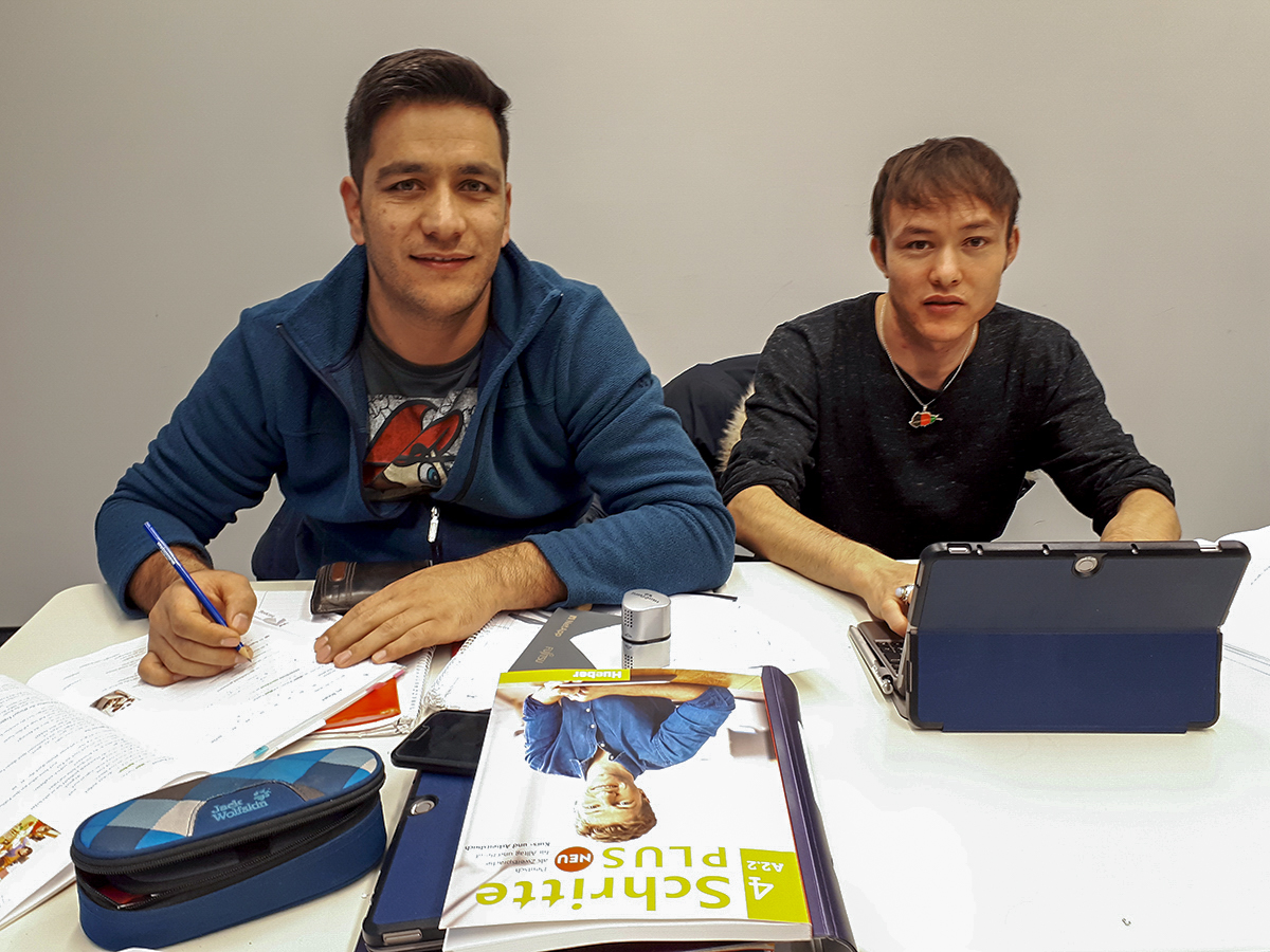 Das änderte sich, als er einige seiner neuen Mitbürger kennen lernte: Unabhängig von mangelnden Konzepten und staatlichen Defiziten gibt es engagierte Bürger, auch im Landkreis Rosenheim haben sich etliche zu Helferkreisen zusammengeschlossen. Für Malik gab es einen DAA-Kurs und schließlich die Möglichkeit, die Berufsschule in Bad Aibling zu besuchen. Dort lernte er auch seinen heute besten Freund Faris* kennen. „Natürlich waren wir froh, zur Berufsschule gehen zu können,“ sagt der 19jährige Faris bei einem Gespräch während der Lern- und Hausaufgaben-Phase, die heute direkt an den Deutschunterricht anschließt. „Wir waren dankbar, überhaupt lernen zu können. Aber wir