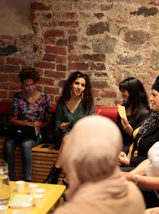 Als ich ankomme, sitzen bereits ein paar Frauen in den Zuschauerreihen, auch die Organisator*innen sind schon da. Alle sind gespannt auf das erste „Meet Your Neighbours“-Treffen in diesem Jahr. Das Projekt, das in Kleinstädten und ländlichen Gebieten Eingewanderte und Geflüchtete mit der Lokalbevölkerung zusammenbringt, um über das Thema Arbeit zu diskutieren, war bislang immer auf großes Interesse gestoßen. Vielleicht wegen der ungezwungenen Atmosphäre: In Stralsund werde ich zumindest gleich mit arabischen Süßspeisen begrüßt.